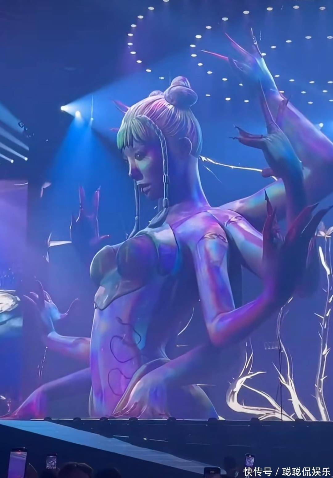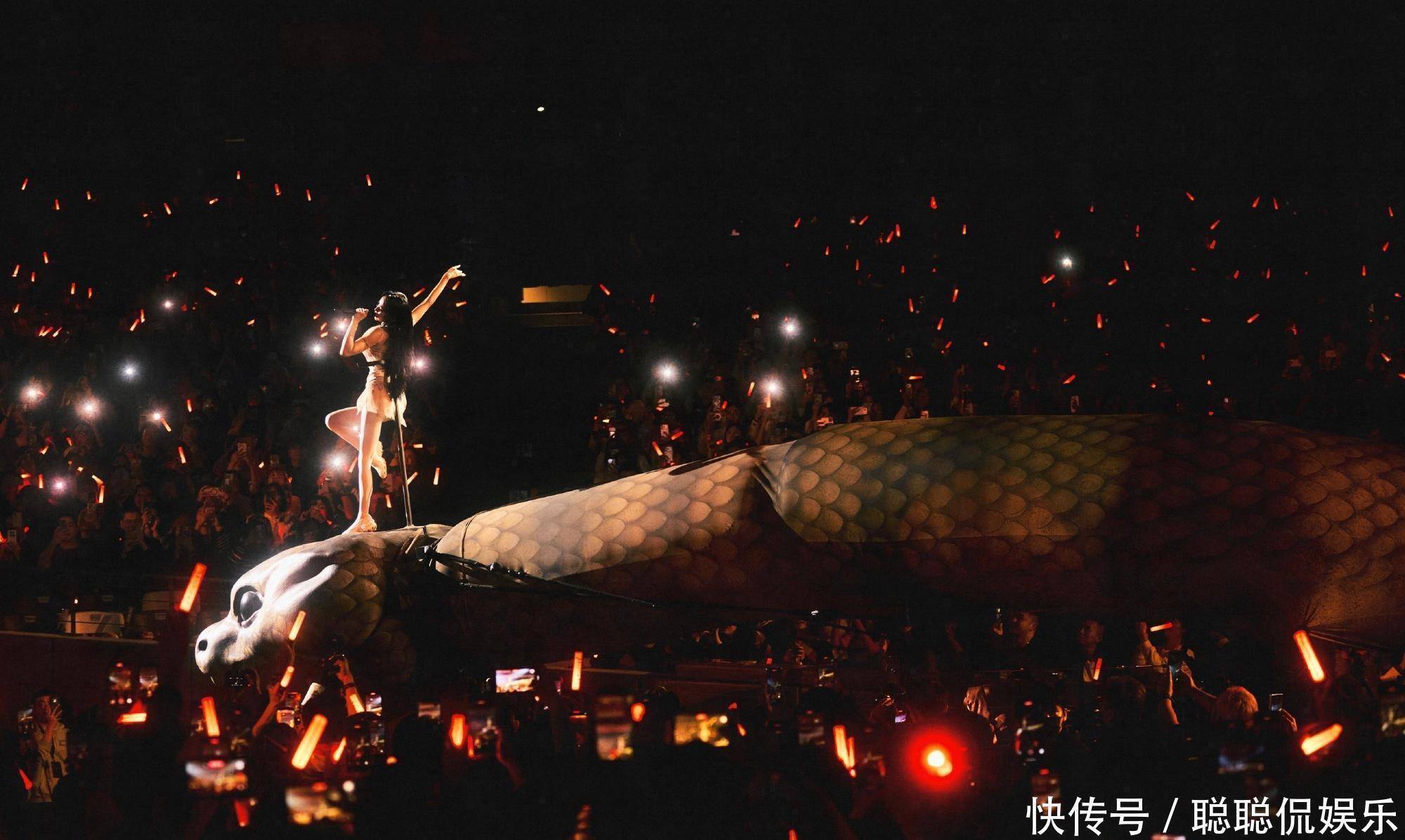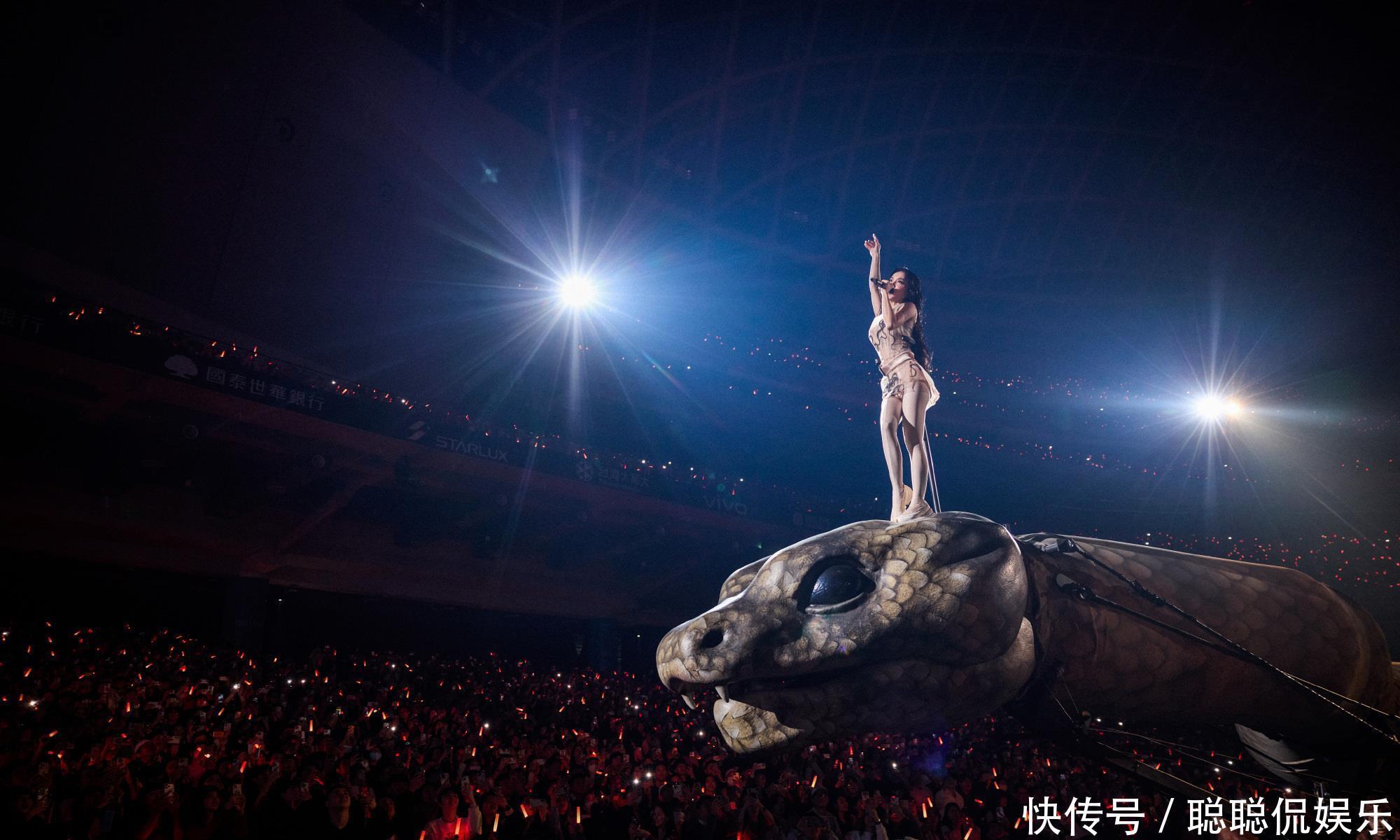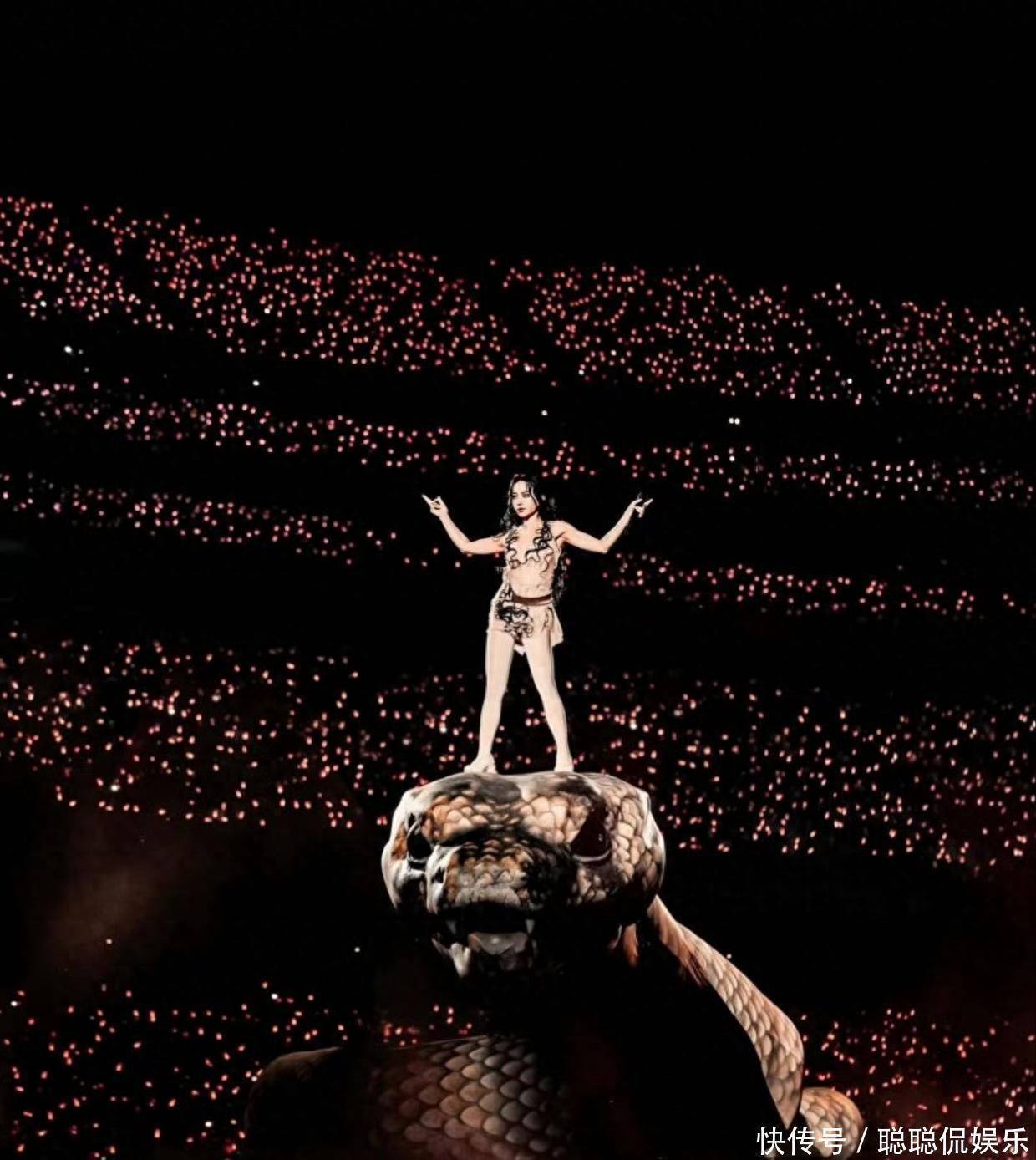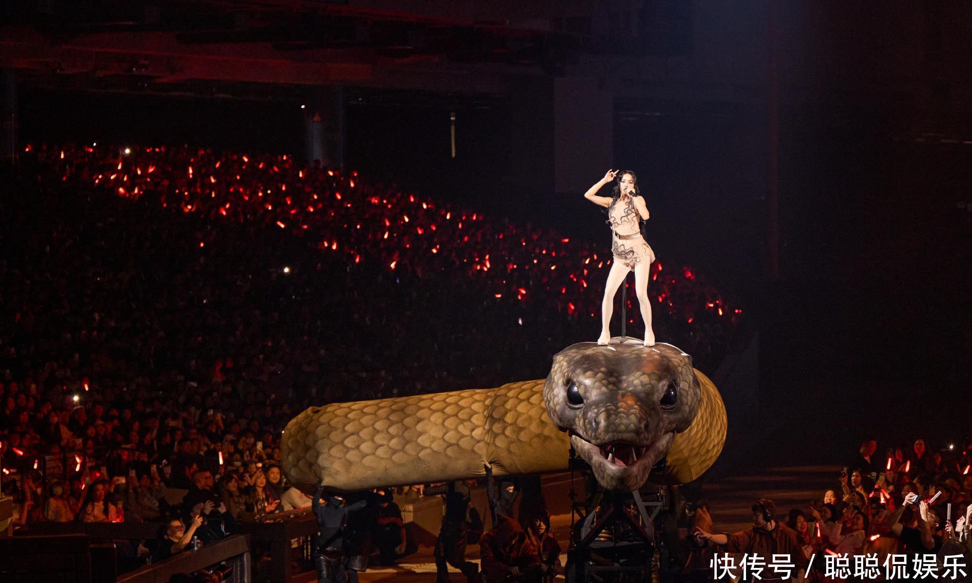 01演唱会的30米机械巨蛇装置(灵感源自名画《人间乐园》和东方女娲灵蛇传说)、金色公牛雕塑、传统爬竿杂技(江苏溧阳非遗团队呈现)等设计,被部分网民关联"光明会""七宗罪"等西方宗教概念,甚至编造"邪教献祭""吸走观众运气"等谣言。
